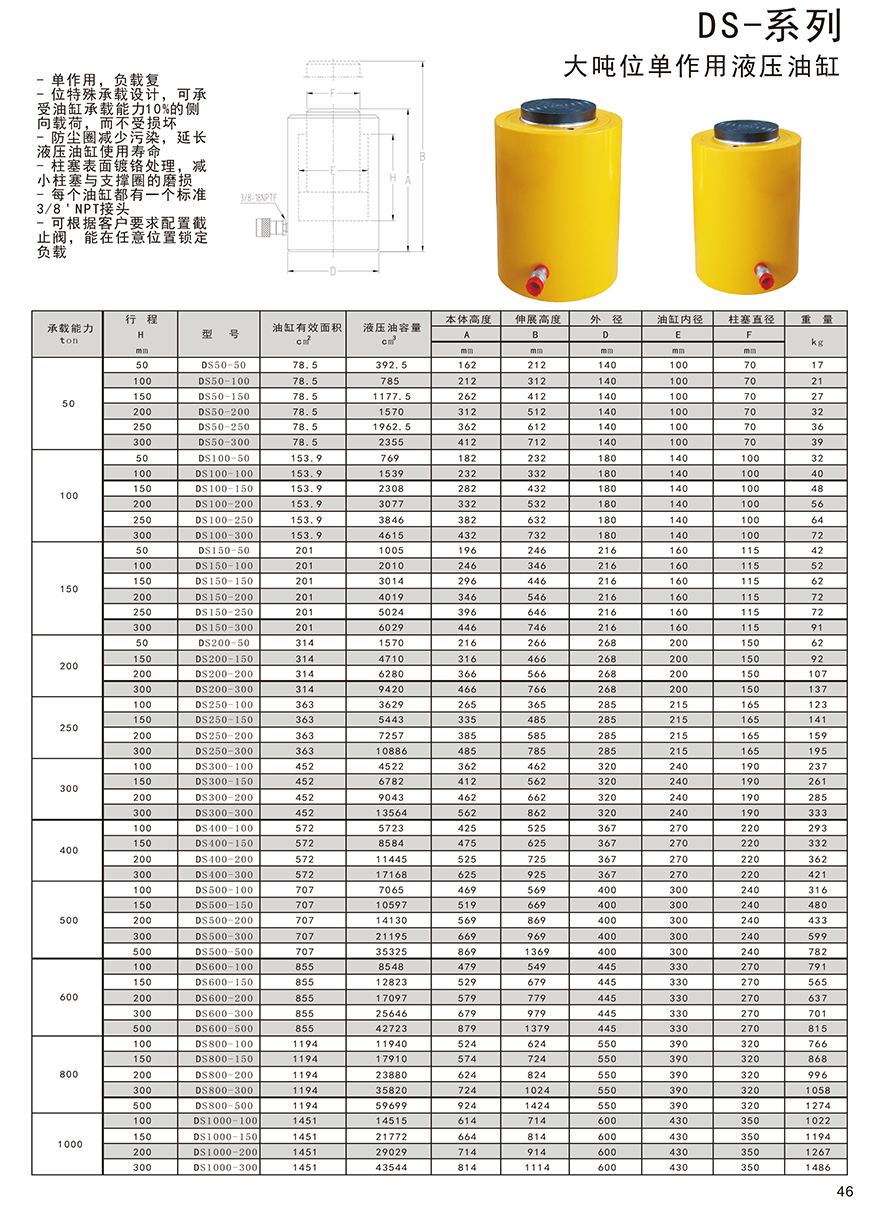 DS系列單作用液壓油缸